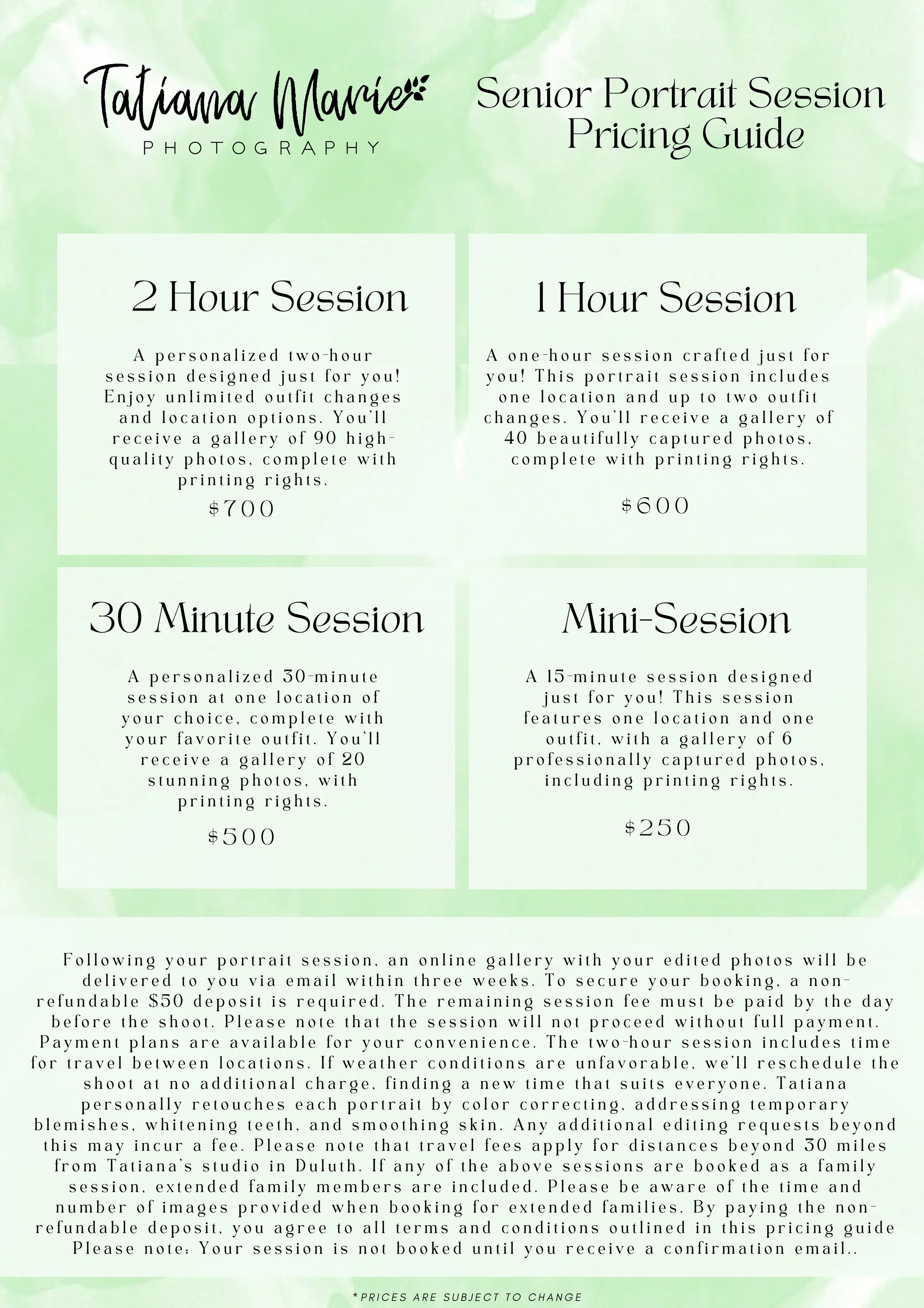 Have more questions or ready to book your session? Please fill out the contact form.
